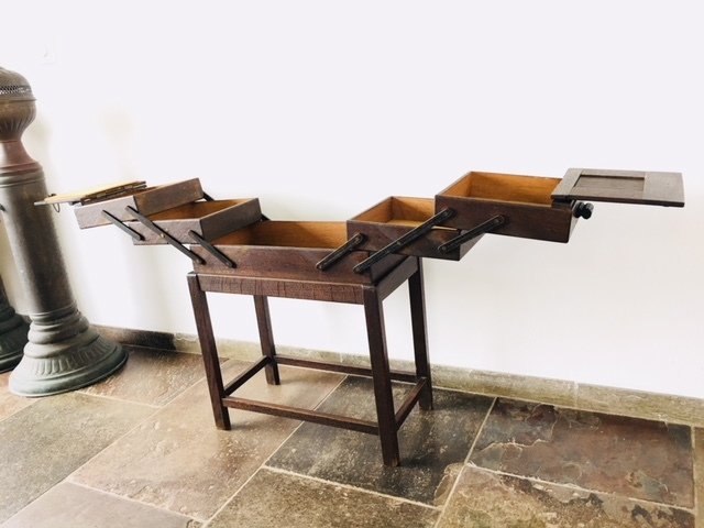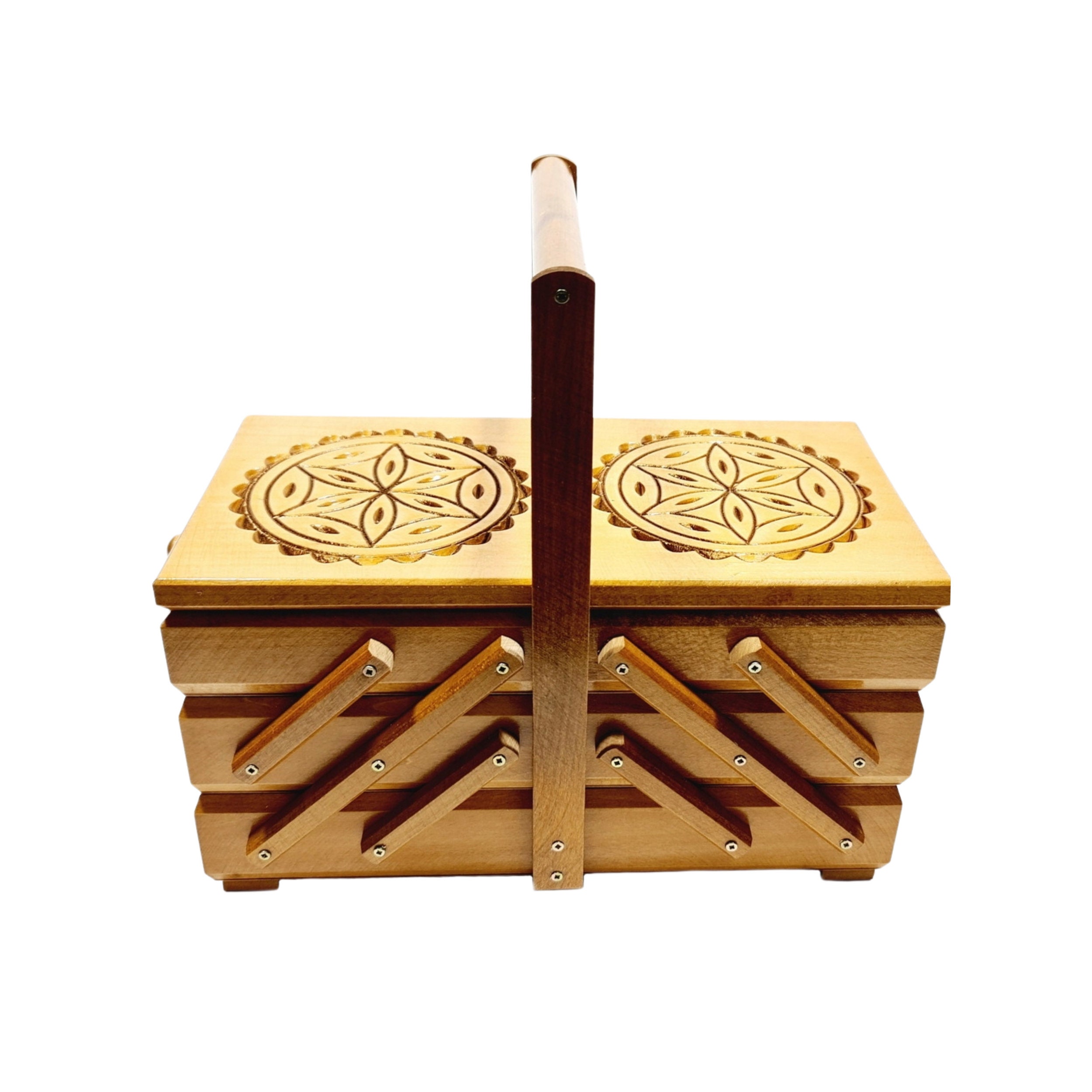 Vintage Wooden Sewing Box W Legs Accordion Expandable Notions Tabletop Dovetail Ebay