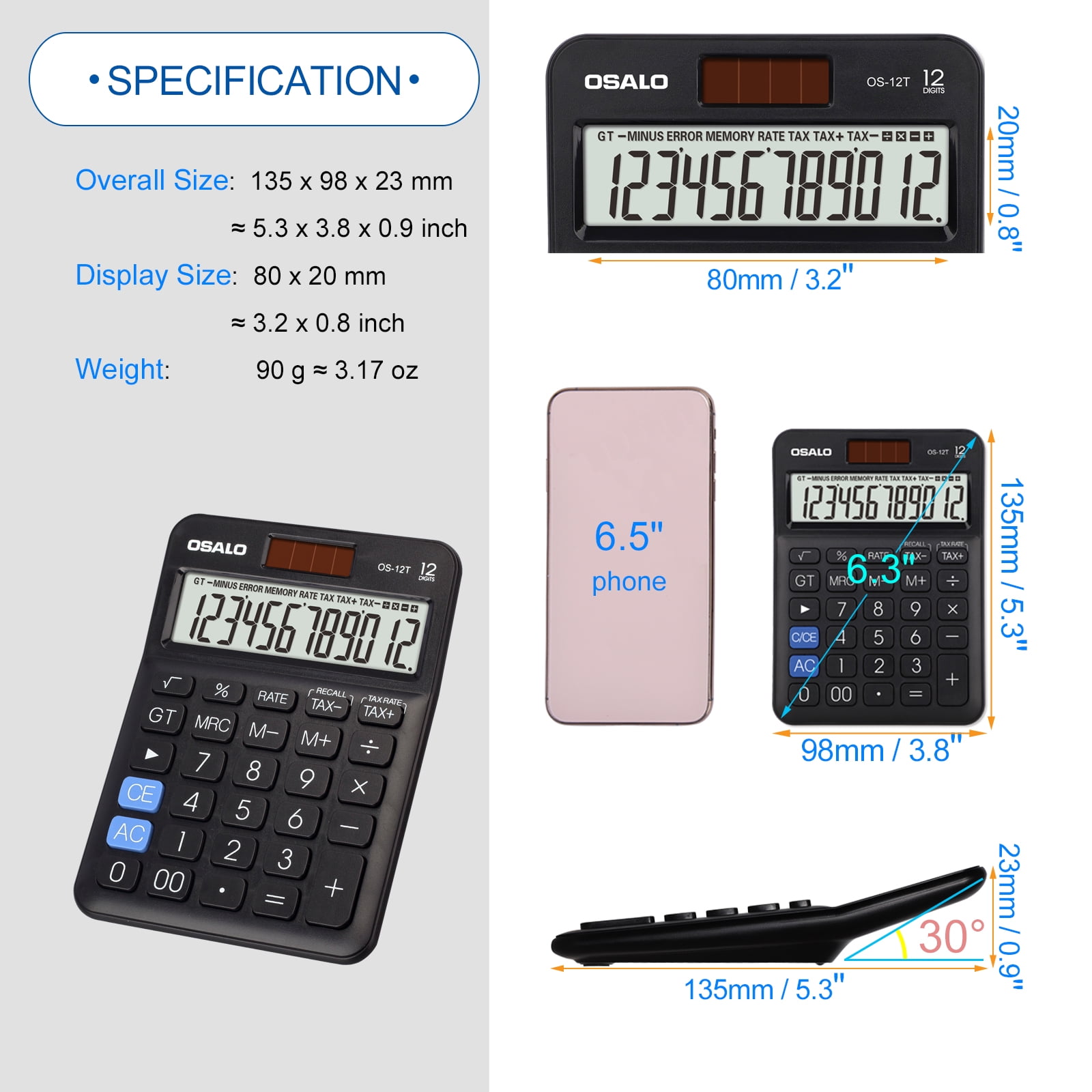 Osalo Large Lcd Display 12 Digit Large Number Handheld Office Desktop Tax Calculator Os 130t Walmart Com